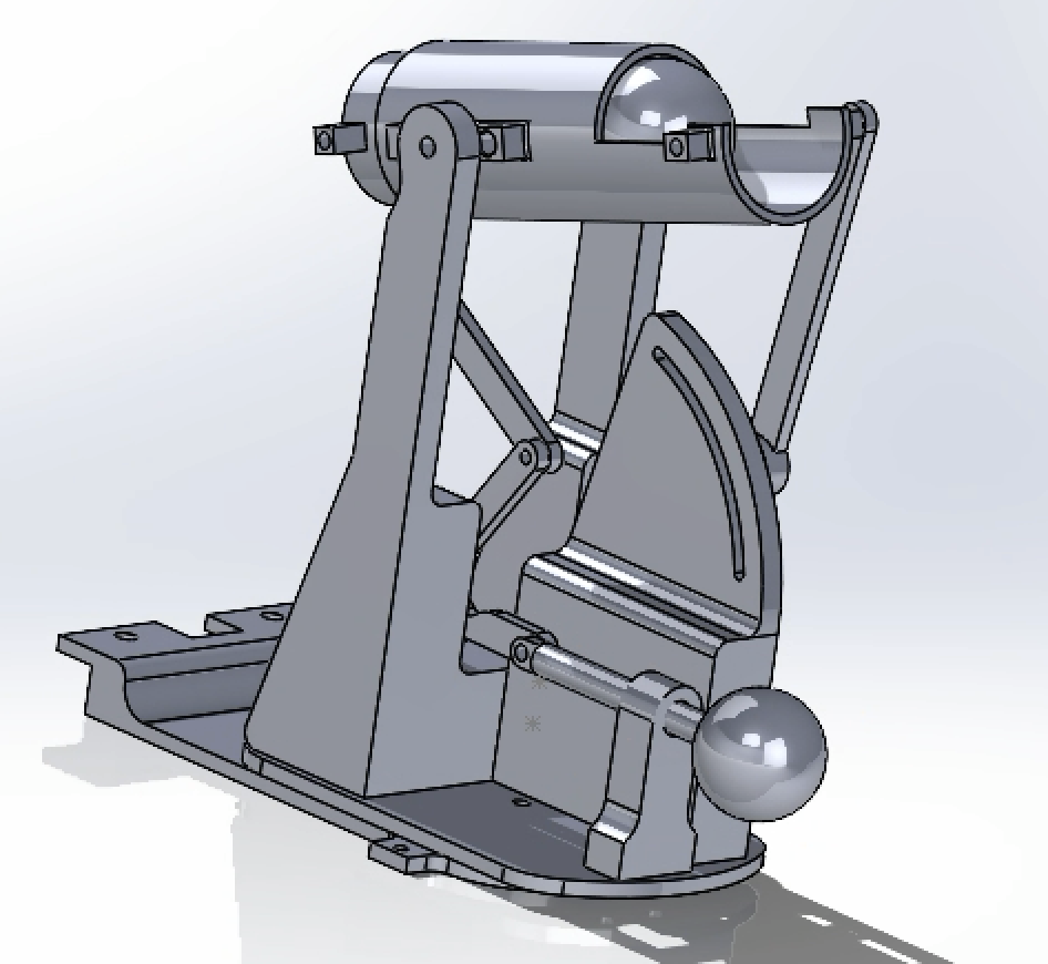 In the Umich ROB550 class (Armlab ) at the University of Michigan, teams design a mechanical system to complete a task in the Armlab competition. For my team, I was responsible for designing a mini basketball shooting mechanism using CAD. The mechanism interfaces with the ReactorX 200 robot arm used in Armlab, which pulls a ball carriage to actuate the shooter.
